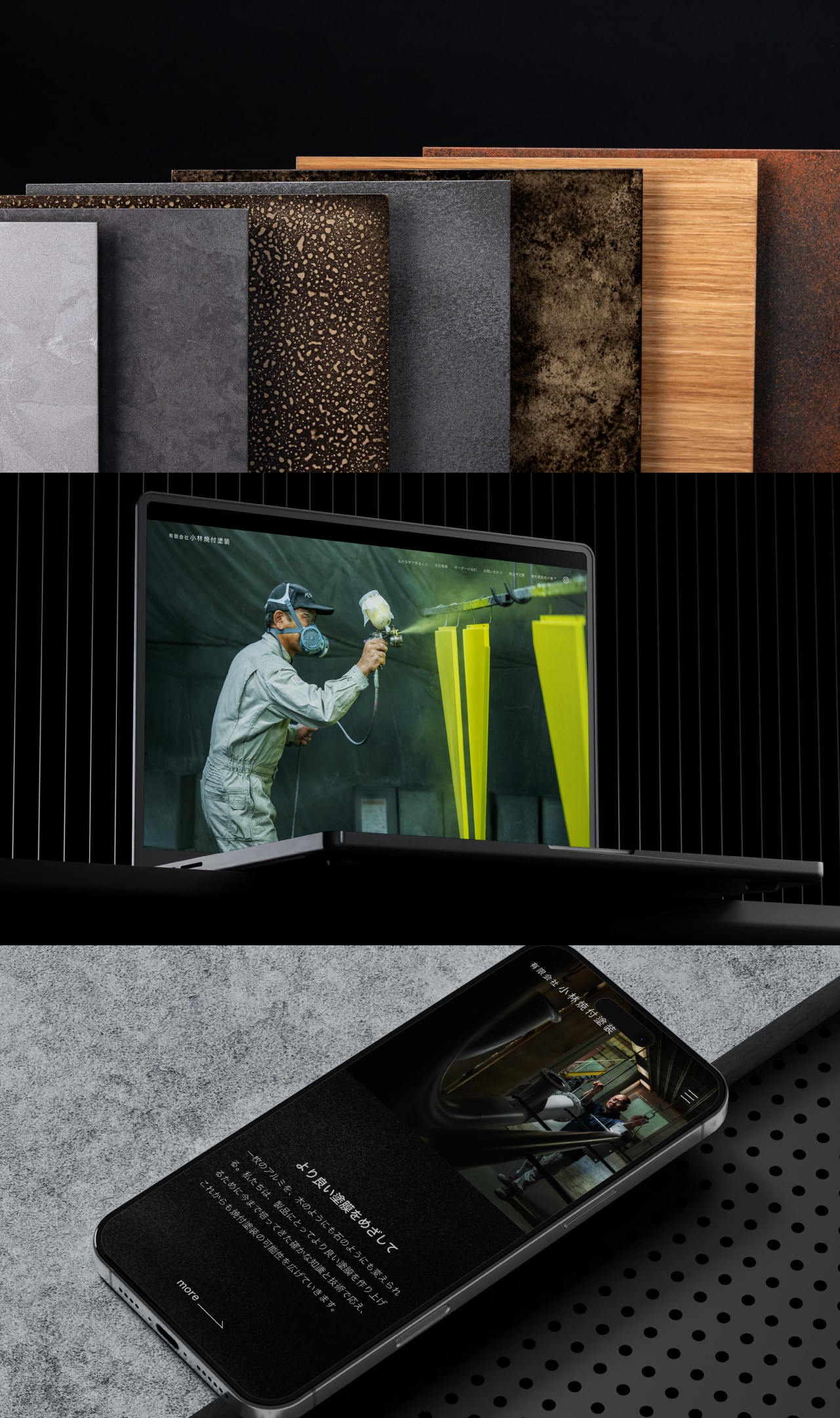 宮城県名取市で焼付塗装業を営む企業のコーポレートサイト。一枚のアルミ板を木のようにも石のようにも変えられる高い塗装技術を誇り、職人たちが真摯に塗装と向き合う。サイト内で閲覧できる塗装見本は質感が伝わるように細部までディテールにこだわり撮影した。